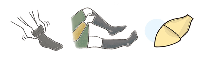 圧迫ストッキングは普通のストッキングや靴下のつもりで履くと、足にフィットせず圧力が正しくかからないことがあります。
