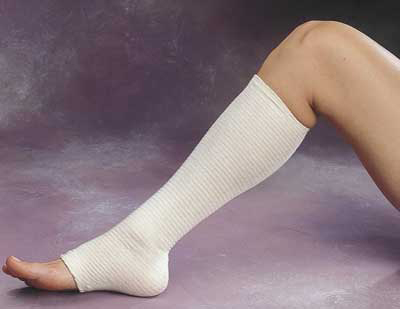 衣類のように履くだけで装着が可能。 - コットン素材の筒状包帯で、吸湿性に優れ、快適な着け心地。