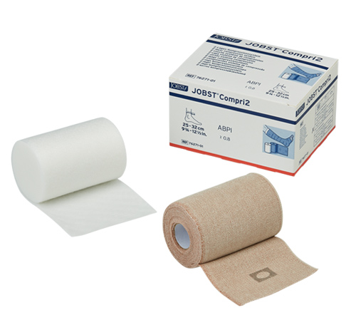 パッディング包帯と低伸縮の自着性ショートストレッチバンデージを